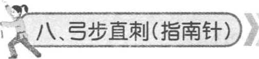 (2) 同时右手持剑收经腰间,立剑向前刺出,高与胸平;