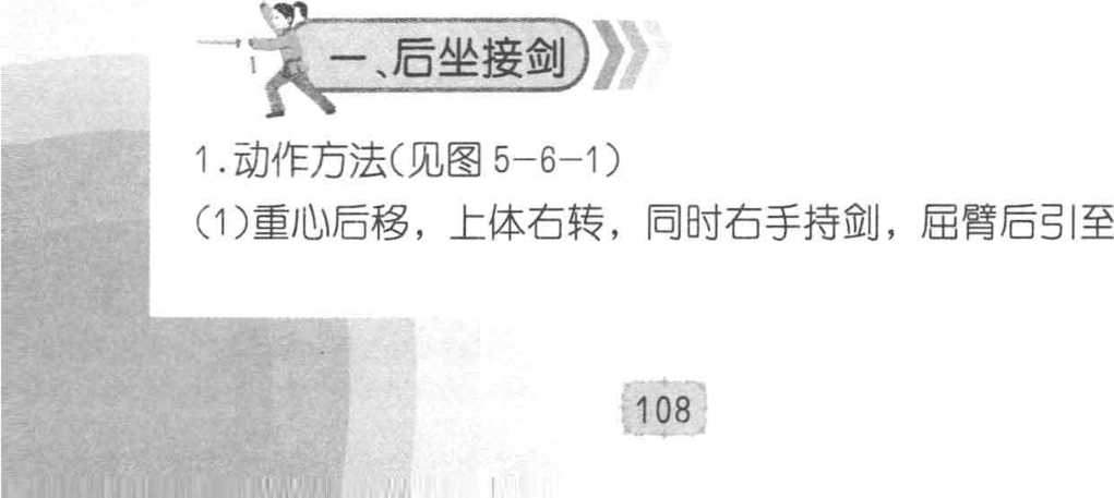 (2) 在变虚步时,两手左右分幵,置于胯旁,手心向下, 剑身斜置于身体右侧,剑尖位于体前,身体转向起 势方向,目视前方。