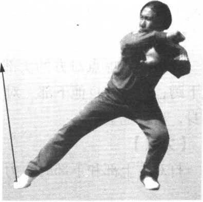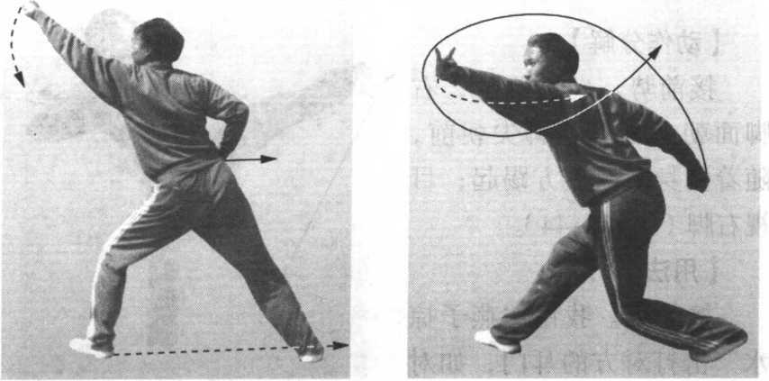 采对方手腕时,力点在左手五指。圈打对方耳门时,力点 在右拳眼。