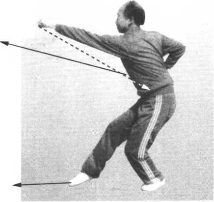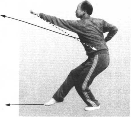 垢 3.左脚向后落地,腿变右寒鸡势,紧接向右转腰调膀;双