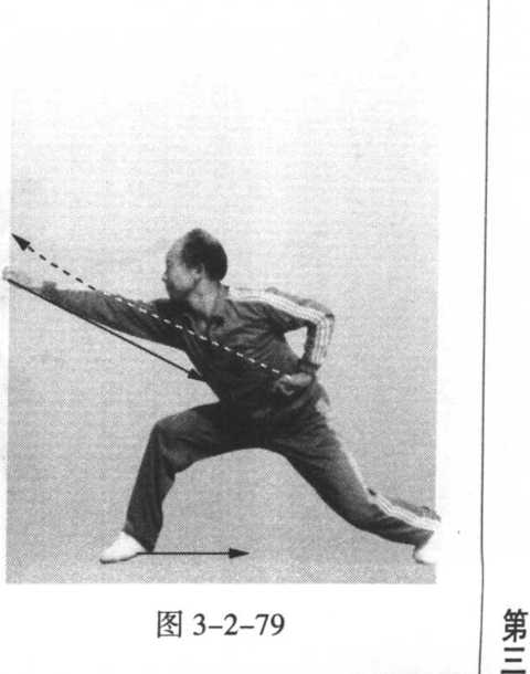 出,拳面朝前,拳心朝下, 高与鼻平;同时,左拳外旋, 屈肘收至腰间抱拳,拳面朝 前,拳心朝上,肘尖朝后; 目视右拳(图3-2-79)。