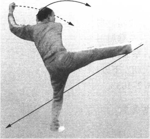 2 图 3-2-104图 3-2-104.右脚脚面绷直,脚 尖朝前,向前上方踢起, 高与腰平;目视右脚(图 3-2-105 )o