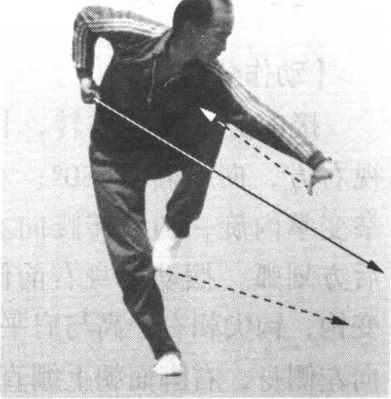 采对方的腕或前臂时,力点在左手五指。打对方肋或胸部 时,力点在右肘尖。