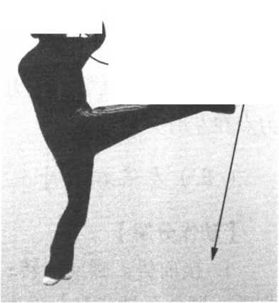 [ 2.接上动。左脚落地,位于右脚前方;目视前方(图4-