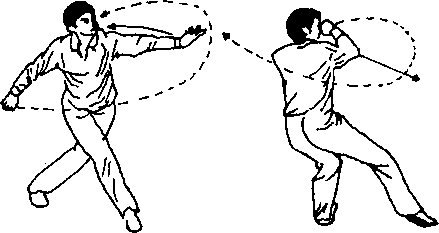 采来拳之腕时,力点在右手五指。圈打头部时,力点在左拳 眼。