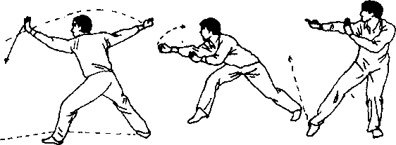 挂他脚和击打下部时,力点在拳心。挂他手、击打上部和面 门时,力点在拳背。