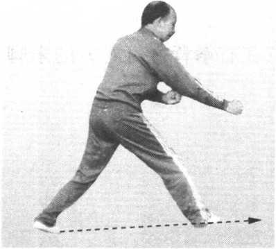 6 .左脚倒插向前上一步, 成右麻花步;目视右拳(图5- 2-78 )。