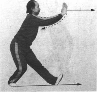 接前招。我用“左右二阴 阳”招出对方的双手,紧接着 用双手挑打他的下颌。如对方 仰头躲过,我顺势反手劈打他胸部。