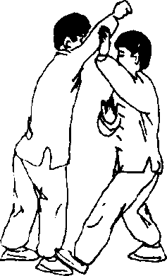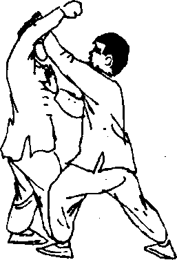 要 点:上推托敌肘要及时,并向上用力。推击敌左肋要 快速、准确、猛狠、有力。