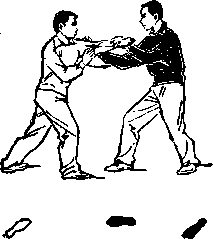乙在甲的右手将棚到左腋部时,拔背、含胸,向左转 腰,重心移至右腿,左鮮向左后方退一大步成半马步。同时 左手内旋,翻腕(拇指向下)采拿申的左腕,用腰腿劲向左 后方采领。右手松开甲的右腕,在左脚向后退步时,用右举 心貼扶于甲的右上臂外俩,略向左侧拦按。眼看甲方(图 6?> ? 68要点同66式,