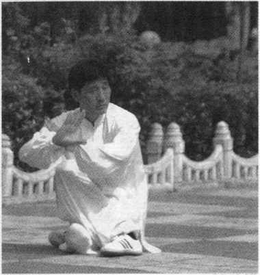 8 .盘坐蹬脚: