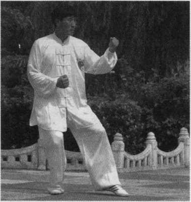 要领:进身上步双手捋,捋到 近身起膝顶。右拳打来顶右膝,关 键轻捋引进身。