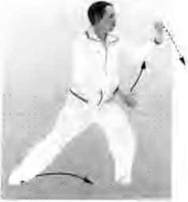 左分开侧跨一步.前脚掌内侧着地.脚尖仍向前 眼看右掌(图214 )c