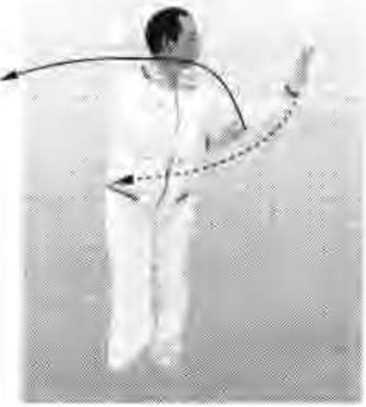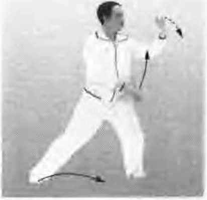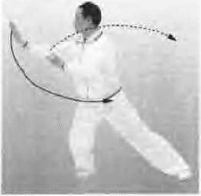 上体左转.重心左移;左掌向上经头前向左划弧?掌心向内;右掌向 下经腹前向左划弧,掌心斜向下 视线随左掌移动(图211 )