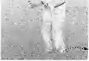 图213图213上体右转.重心右移:右掌经 头前向右划弧,掌心向内;左掌下 落经腹前向左划弧.掌心斜向下 跟随视右手(图213 )。