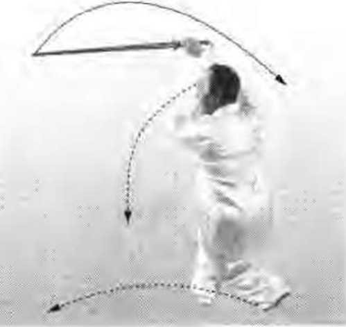 剑向后绕时,转体要充分.眼神随苕向左转视.绕剑应靠近身体同 时前臂外旋.手心向里