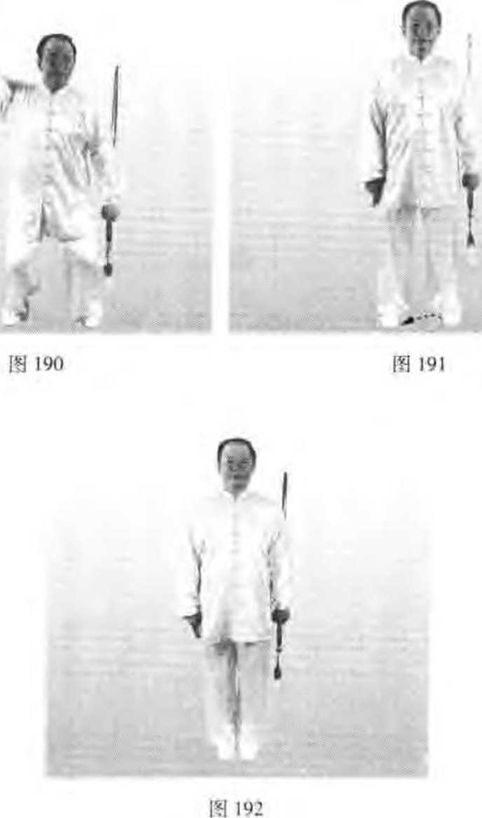 左脚收至L脚旁成井步.还原成预备姿势(图192 k