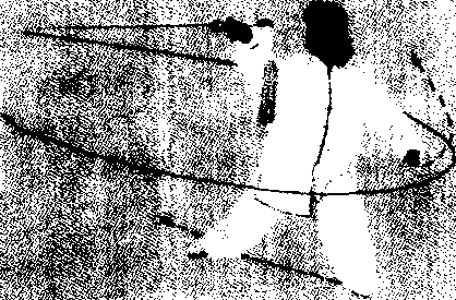 ①此动作源自忒当剑 整个动作要连贯灵活,腰、腿、臂、剑协调一致。最后崩剑为 发劲动作,要转腰、沉胯, 垂肘、抖腕.力达剑尖,发劲松弹。