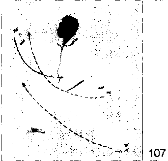 重心移向右腿;右脚尖外撇,右腿屈膝 前弓。左脚尖内扣,左腿自然蹬直,t 心恢复至弓步高度;右手继续前穿并向 上挑起;左勾手内旋,背于身后,勾尖 向上;眼看右手,