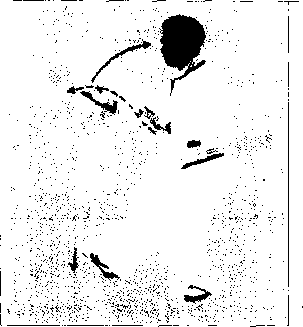 2)右手向下划弧,经腹前摆至左肩前c