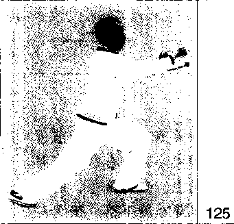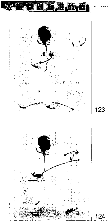119上体恢复正直,右腿屈膝支撑,左脚回 收,以脚尖点地落至右脚内侧,右手匕 提至身前,指尖朝前,掌心向左;左手 屈臂收举,指尖贴近右腕内侧;眼看前 方: