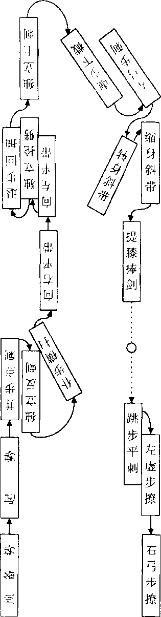 (左车轮剑) (右车轮剑) (大腿展翅) (黄蜂入洞) (怀中抱月) (风扫梅花) (指南针)