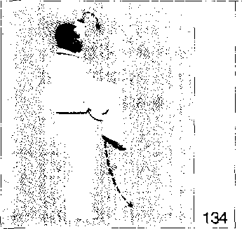 (十八)独立撑掌重心前移,右脚尖外展,左脚尖内扣, 右腿屈“,左腿伸直。同时右拳略向I 挑;左拳稍向下落,两拳眼仍向匕眼 向前看、132