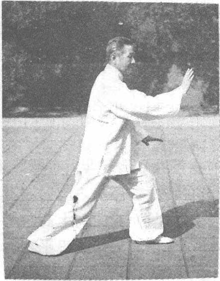 要求:(1)身体虽为半侧面,但身法要正,胸部要松。 (2)此式要注意直腰松胯收臀,沉肩垂肘坐腕。 (3)跟步要轻,落步要稳。要做到肩、胯、膝、肘 相合。