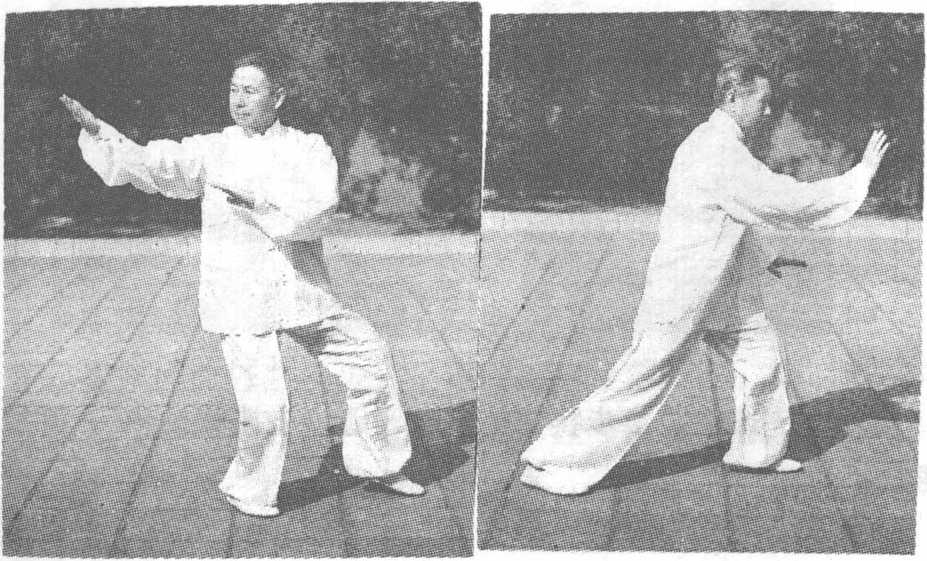 此式完成后,换步换掌,再做一遍“左搂膝拗步”,可参 考图50、图51o