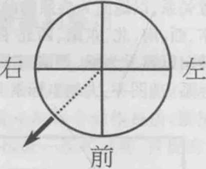 自身坐标系以躯干为参照物的三维坐标系躯干包括肩胸腹胯躯干断面左右方向是横轴,前后方向是纵轴,平面上用八个方位表示前、后、左、右、左前、右后、右前、左后每个方位45。。躯干上下方向是竖轴,即身体中轴线身体坐标系有二十四个方位表示身体各部之间的位置关系。(图二自身坐标系方位图)