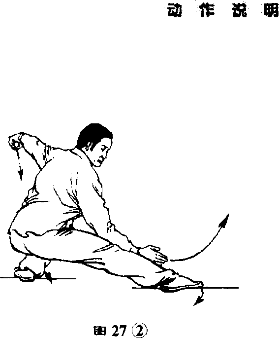 ③右腿稍屈,左脚落于右③右腿稍屈,左脚落于右