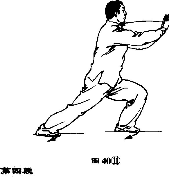 尖m两臂屈町两拳前 卞落至腹前,蛔向srw 目向 前平视。(图40⑩)