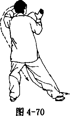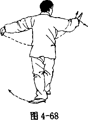 图 4~65图 4~66图 4-67撤步时头上领,保持身体中正,转体前左脚注意内扣角度为 45度以上。