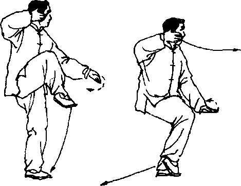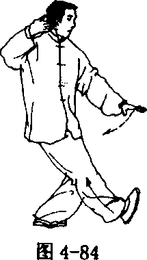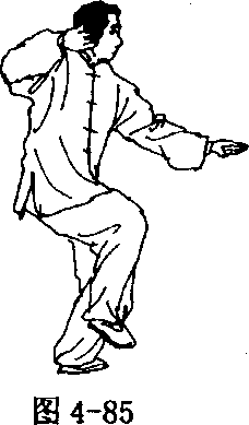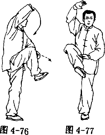 提膝撑按 动作与②相同,唯左右相反(图4 - 76、图4一