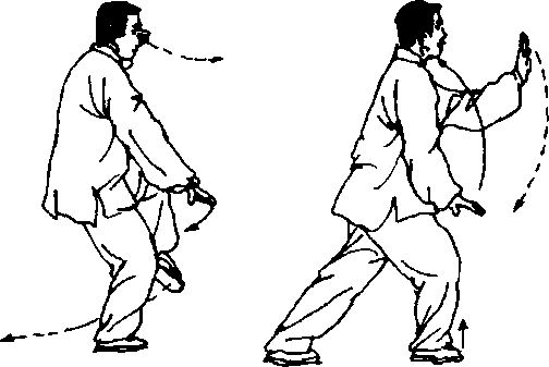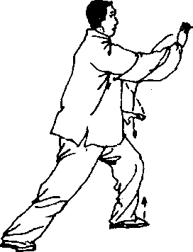 ② 当完成弓步时要注意后脚跟外展,以便于再换成弓步时脚 尖方向保持向前。