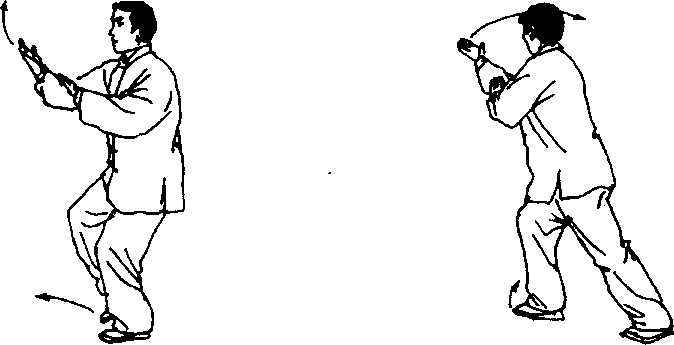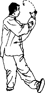 ③ 图 4-110第三段图 4-112转动中意想从“百会”到“会阴”似有一轴,注意关节松开。