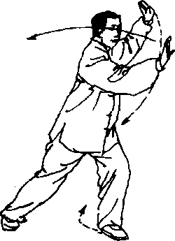 ① 动作过程中,要特别注意坐胯、转腰、旋腕等环节的协同一 致;以及手臂的屈伸和两腿虚实转换的协调配合。