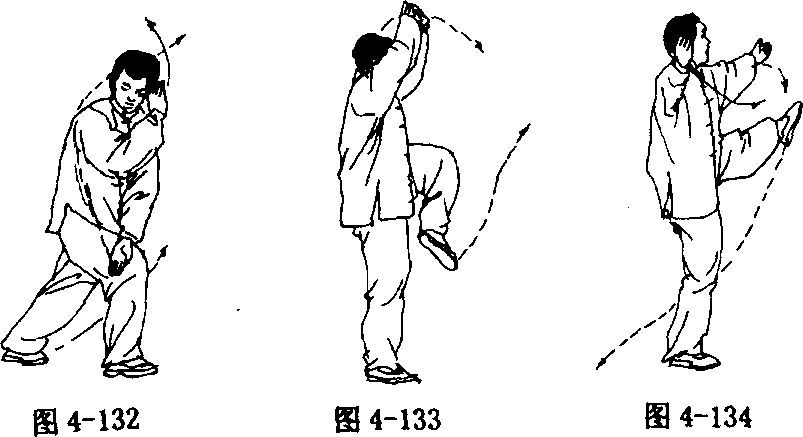 ② 动作与“右分脚”②③相同;唯左、右相反(图4-132-134)。