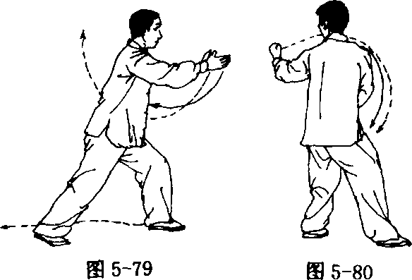 图 5-90 图 5-91动作与第(14)势“抱虎推山”相同,唯步法相反(图5-91)。