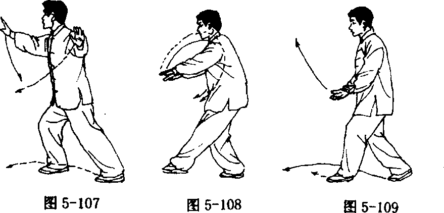 弧至右前方成右单鞭势,眼看右手(图5 - 107)。