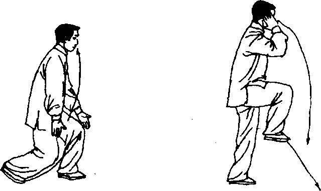 由低势為向高势时,头上领,下肢支撑脚蹬地,上挑、下采之 手,一致用力,上下完整一气。