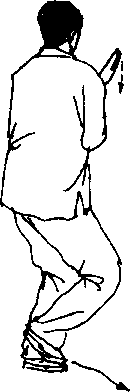 图 6-139斜身靠击时重心偏向右腿,身体向右倾靠,两胯4艮松缩。