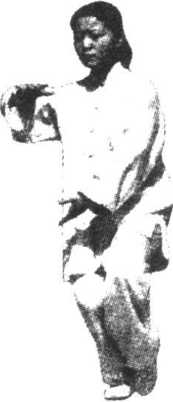(2)右脚落实,重心前移,左脚收于右脚内侧;同时左掌 由前向下画弧至腰前,右掌自下向后、向上画弧收卷至胸前, 两掌成“抱球”状(图3. 40)。