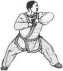 要点:定势时,两臂轻轻沉合,注意正头、竖颈、松腰、 沉肩,上体正直,方向转为正西。