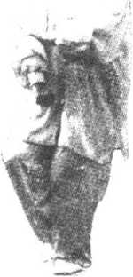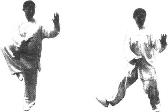 (2)上体微右转,右脚向右侧J(正西稍偏北)落下,两掌下