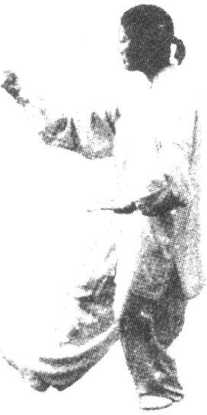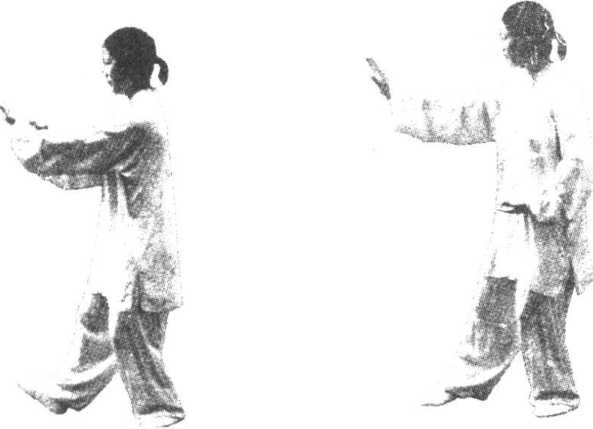 要点:收右脚时要先扣回脚尖,再轻轻收脚。必要时,左 脚尖可适当外展,便于上体左转。其他要点参看左搬拦捶。