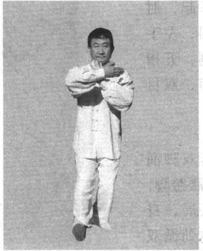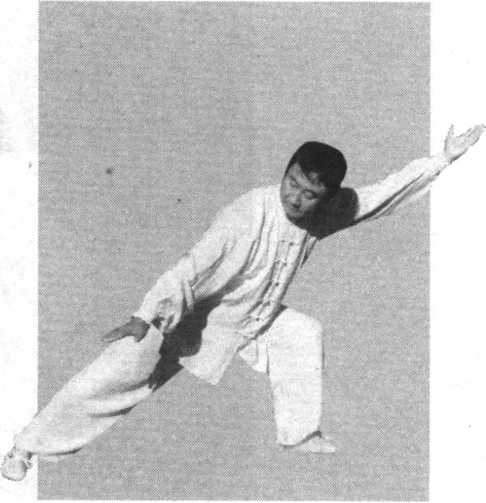 1 .意随重心转换,松落于左脚涌泉穴之下,提顶松腰, 劲分上下,其上者,自脊背循双臂上搠,待左手按于右肱时, 意微后倚,并有含劲向前挤之意。