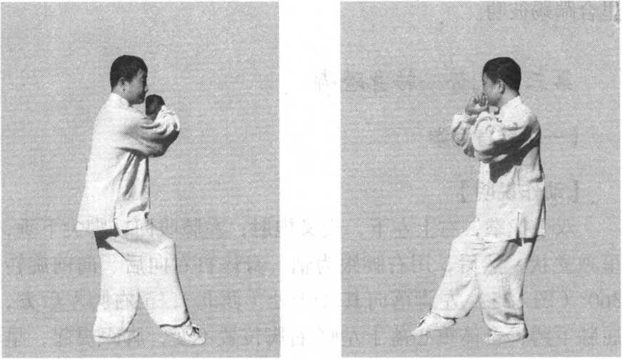 2 .抱肘时拳与前臂要含捋拿之劲,拳到位,意归涌泉, 劲分上下,以肘尖引导松顺发出。