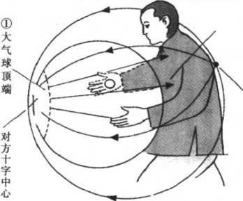以大气球的一鼓一瘪去接发对 方,使对方的来力只打在球皮上,而 打不到自己的中心。学会运用大气球 保护自己的中心,就不必依靠身形手 势的变化去应付对方的来力。