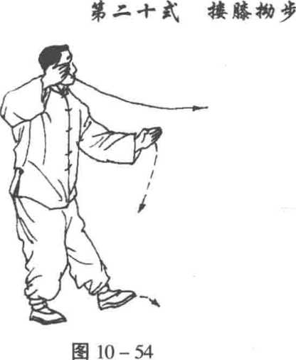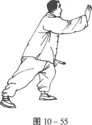 1 .后坐收掌 动作同(图10-15),面向正东(图10-56)o